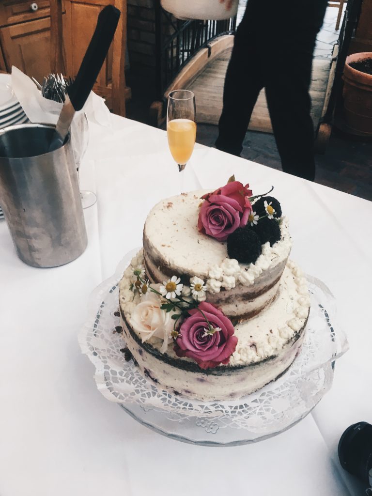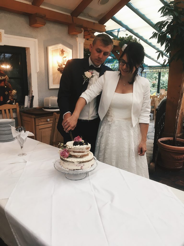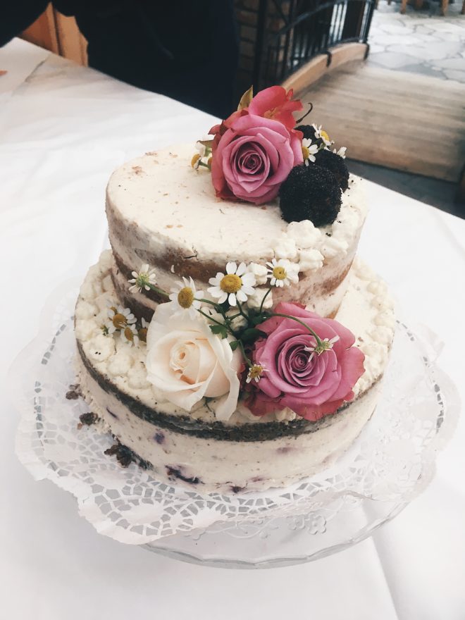 Mir schwebte sofort eine doppelstöckige „semi Naked Cake“ vor und da ich bei der Blumenwahl mit dabei war, wusste ich auch welche Farben ich wählen durfte, um ein einheitliches Gesamtbild der Blumen und Hochzeitstorte zu erzielen. Nach kurzem Kontaktieren der Floristin, organisierte ich 3 weitere Rosen, welche ich für die Verzierung der Torte benötigte.