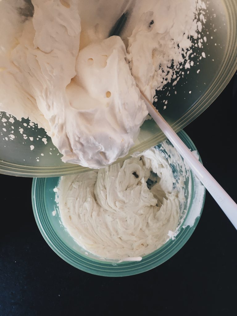 11. Anschließend wird der Schlagobers untergehoben und kühl gestellt.